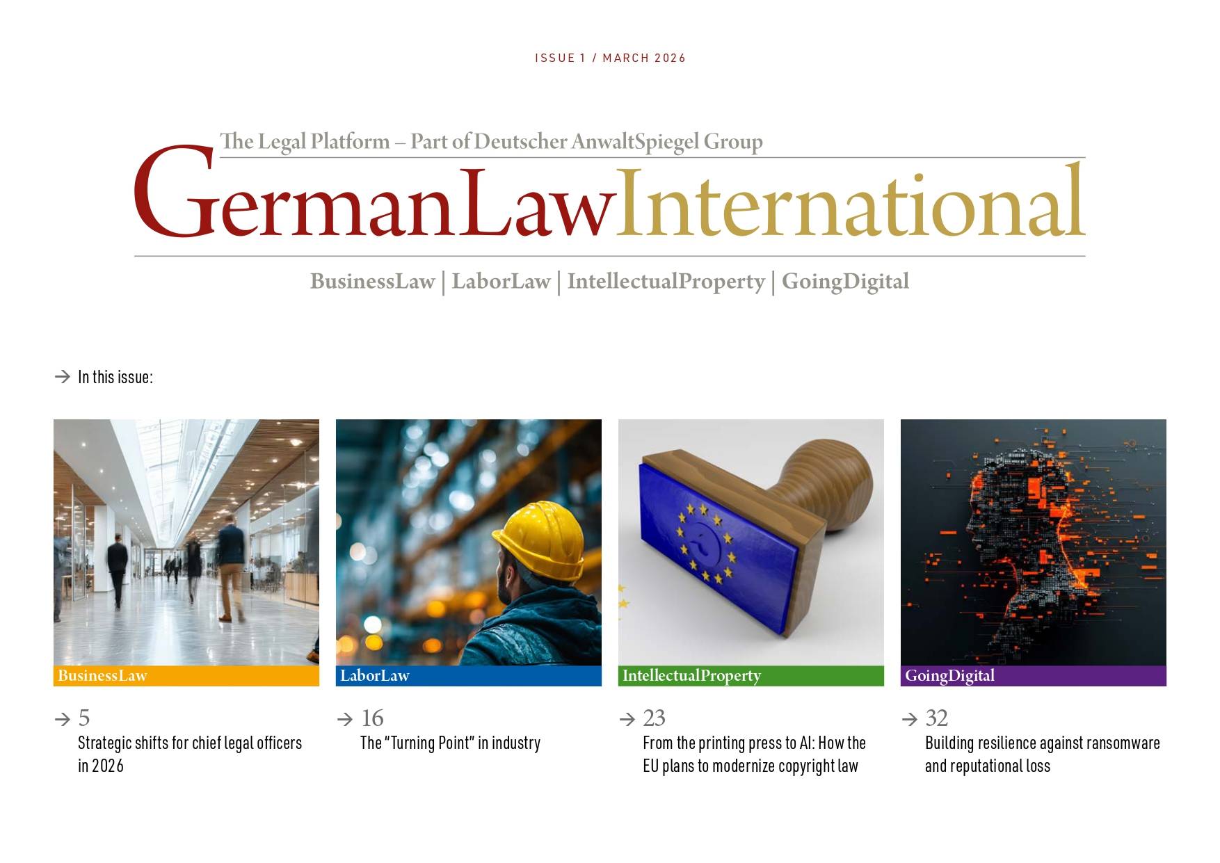 The online magazines of the GermanLawInternational platform directly into your mailbox.